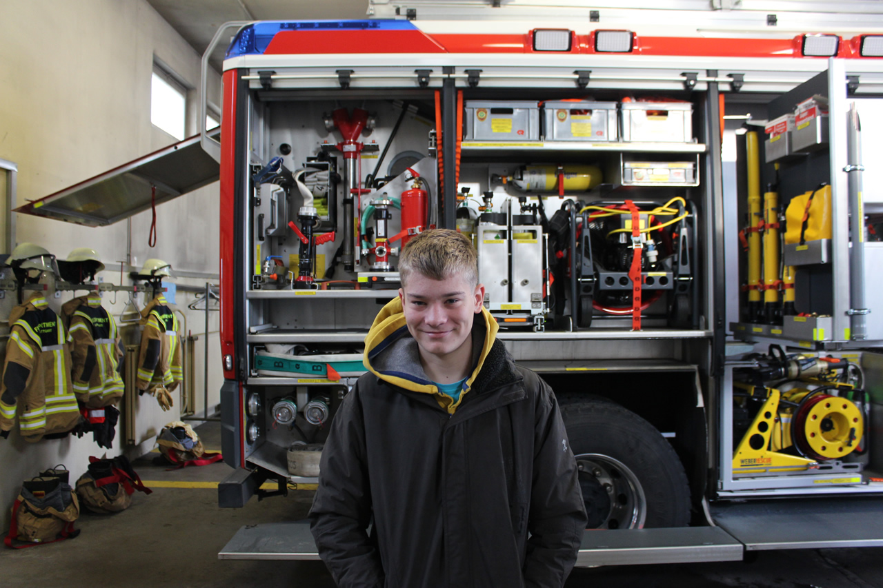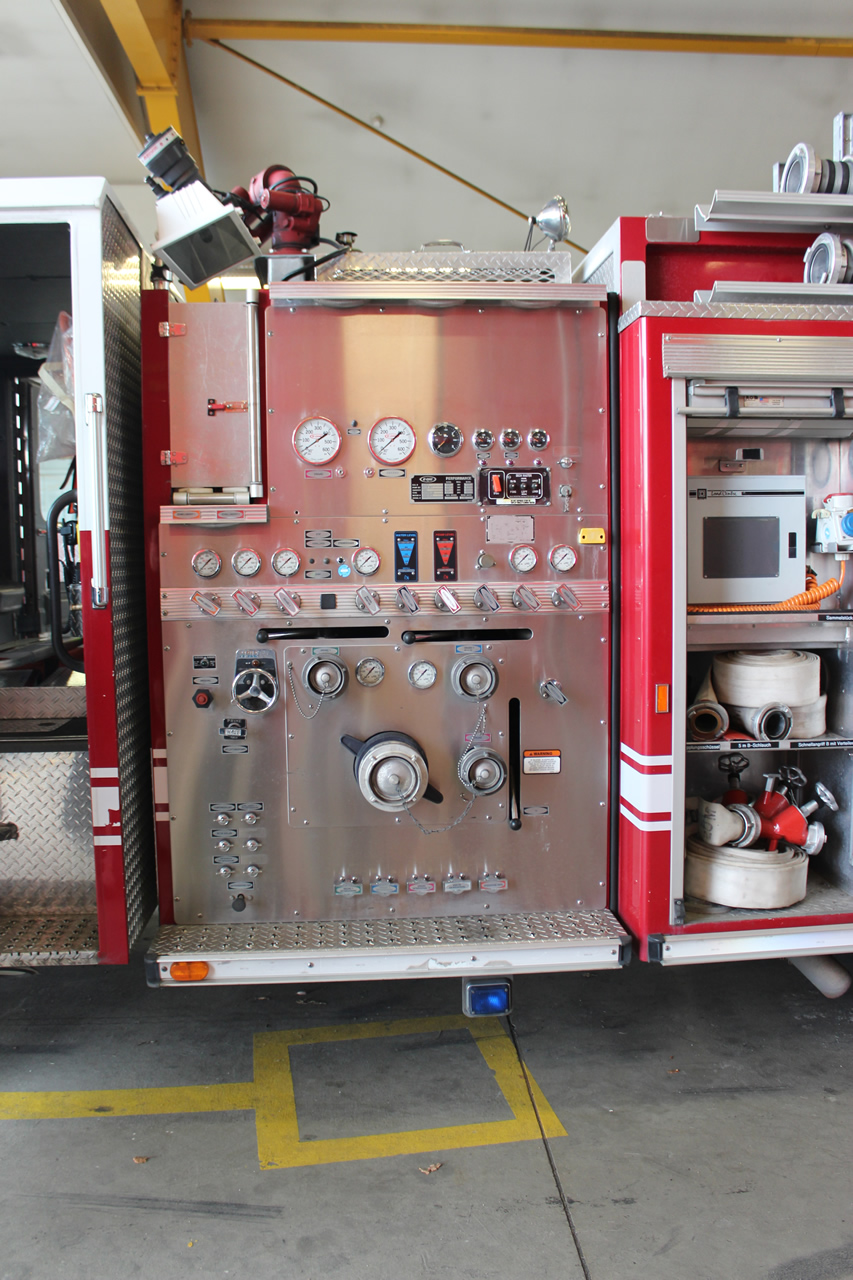 Nach der Führung ging es in die Fahrzeughalle, in welcher sich ein neues HTLF befand. Obwohl es ein europäisches Fahrzeug ist, sorgte es durch neueste Technik für Staunen – solch ein Fahrzeug ist wohl der Traum jeder Feuerwehr.