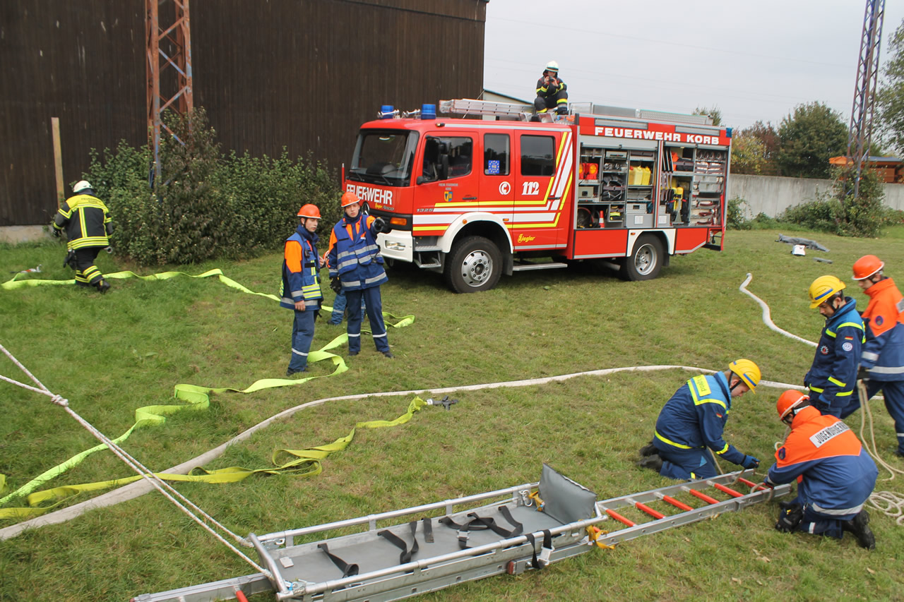 Am vergangenen Samstag, den 10. Oktober, trafen sich 25 Jugendliche der THW-Jugend Ludwigsburg und der Jugendfeuerwehr Korb zur gemeinsamen Ausbildung und Übung auf dem Übungsgelände des THW-Ortsverbandes Ludwigsburg.