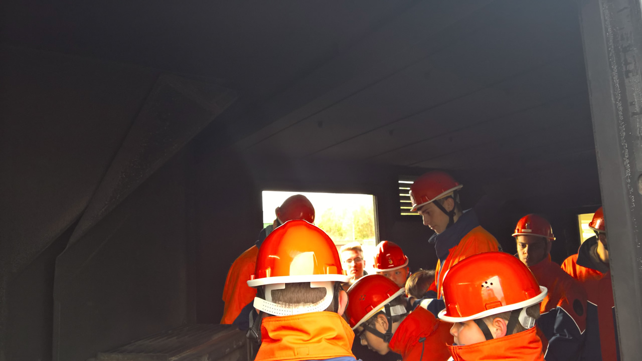 Nach dem Theorieblock folgten eine Tour durch die Brandübungsanlage, sowie eine kurze Demonstration der Durchzündung einer Rauchschicht an der Decke – dem sogenannten Rollover – bei offenen Türen.