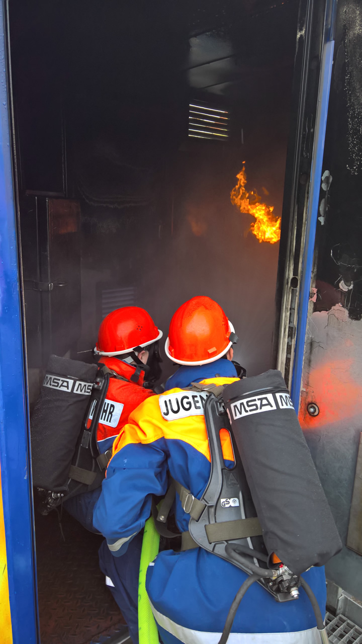 Die Brandherde wurden in einem für die Jugendfeuerwehr angemessenen Rahmen – vergleichbar mit einer brennenden Tonne – befeuert, da die Jugendlichen nicht über reguläre Schutzkleidung, die körperlichen und medizinischen Voraussetzungen, sowie die nötigen Ausbildungen eines Atemschutzgeräteträgers verfügen. Im Gegensatz zu Übungen mit brennendem Holz konnte hier jedoch jederzeit per Knopfdruck aus der Steuerzentrale oder per Not-Aus-Knopf eingegriffen werden. Zusätzlich wurde der jeweilige Trupp von fünf Jugendleitern überwacht.