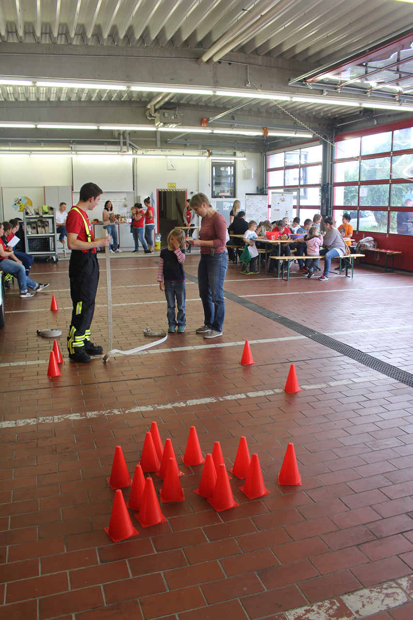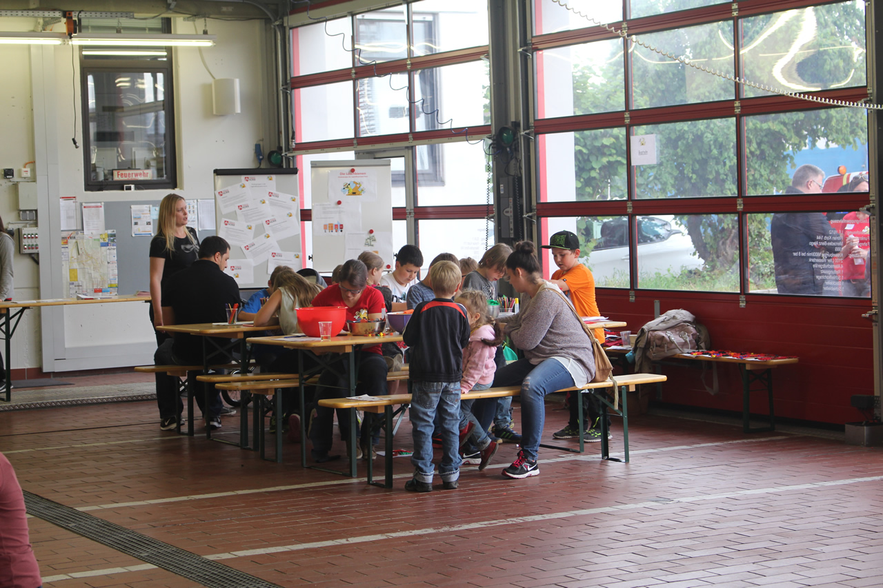 Nach zwei stündigem Aufbauen kamen zum Start um 15 Uhr schließlich zahlreiche Kinder zum Feuerwehrhaus. Dort warteten bereits mehrere spannende Station, welche es zu erkunden gab.