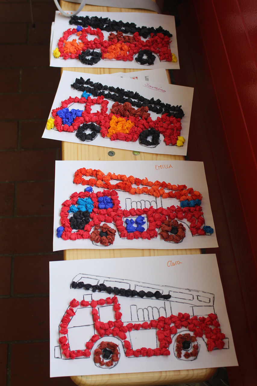 Beim Basteln konnte man verschiedene Feuerwehrfahrzeuge und den Feuerwehrdrachen ausmalen und auch plastisch herstellen.